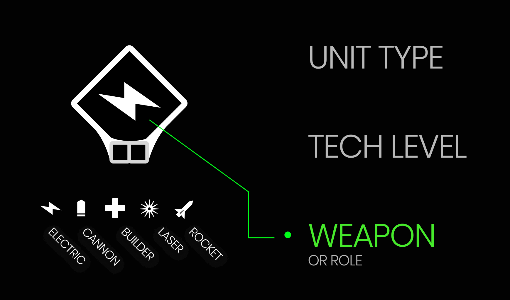 전략 아이콘이 나타내는 가장 중요한 무기유형과 역할을 쉽고 빠르게 표현하는 것이다. 플레이어의 성향이나, 전장의 상황에 따라 어떠한 무기를 가진 유닛을 선택 할 지 신속하게 결정해야한다. 하지만 400개가 넘는 유닛들 중에서 플레이어가 필요하다고 생각한 유닛을 전장에서 쉽게 골라낼수 있도록, 각 무기 유형과 기능별 모두 고유한 아이콘을 가지고 있다.