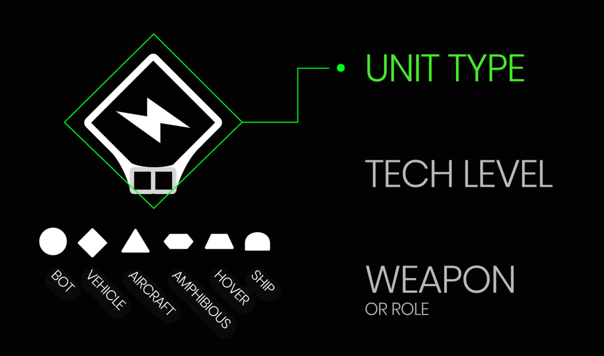 각 유닛 유형에는 고유한 실루엣이나 모양이 있다. 복잡한 전장에서 빠르게 유형을 알아볼수 있게 구성하였다.