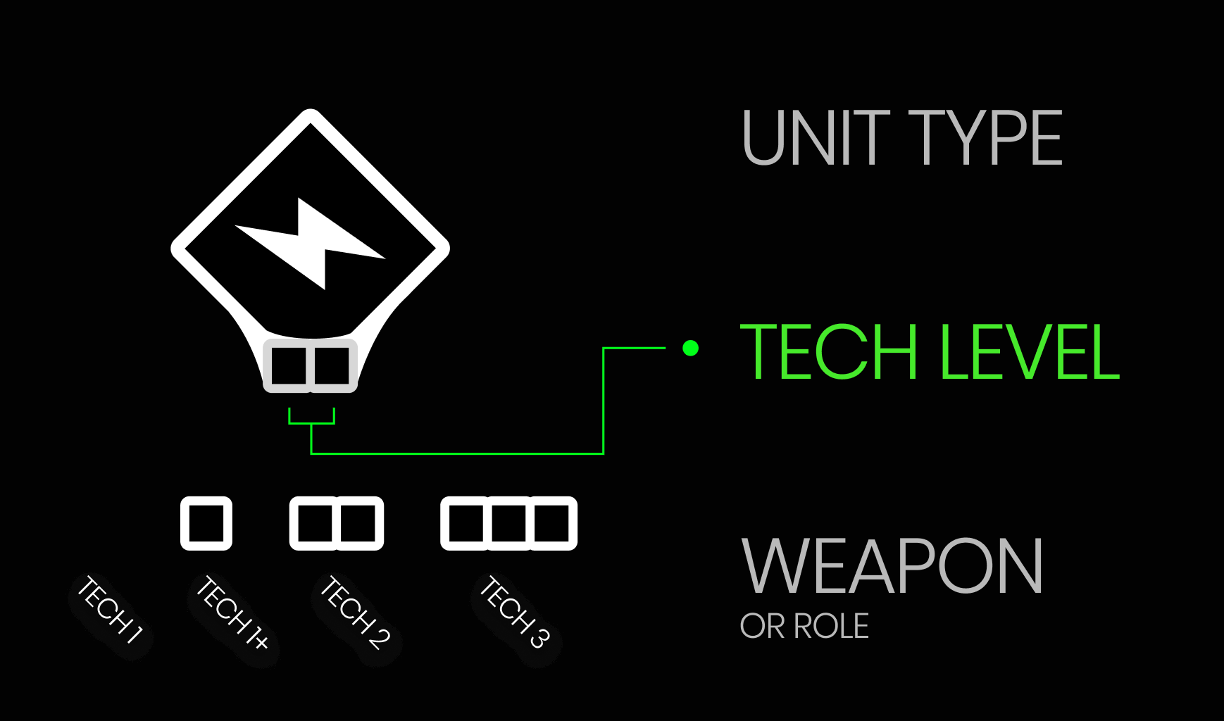 아이콘 하단에 있는 작은 점으로 표현한다. 점이 없으면 테크(Tech) 1, 점 2개는 테크 2, 점3개는 테크 3이다. 1개의 점이 있는 경우가 있는데 T1 항공기보다 강한 수상 비행기에는 1개의 점이 있다.