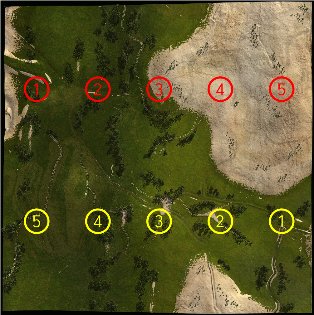 이 지도의 중요 지역(Important Area)을 판단하기는 매우 힘들다 그 이유는 지형적 특징이 없는 평지(Flat)로 구성되어 있기 때문이다. 하지만 유일하게 이야기 할수 있는 것은 아군의 전선을 적이 뚫지 못하게 해야한다.